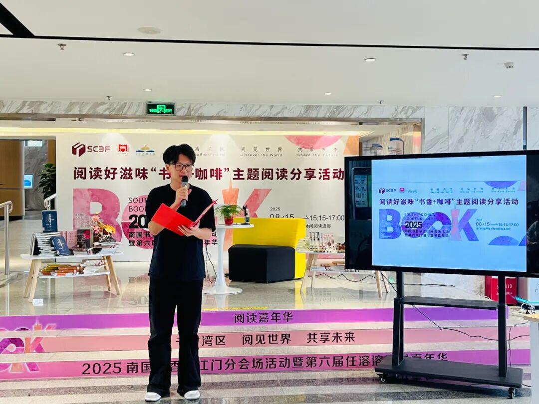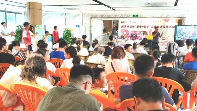 8月15日,一年一度的南国书香节盛大启幕。当天下午,南国书香节江门分会场重点活动——“书香 + 咖啡”主题阅读分享会在图书馆阅读休闲连廊火热开场。活动由江门市图书馆主办,江门时衡餐饮有限公司协办,现场人气高涨、氛围热烈。活动巧妙融合文学分享、精品咖啡品鉴、诗词朗诵及有奖竞答等环节,以咖啡激活阅读味蕾,以书香沉淀生活芬芳,为亲子家庭带来一场沉浸式“书咖”对话。