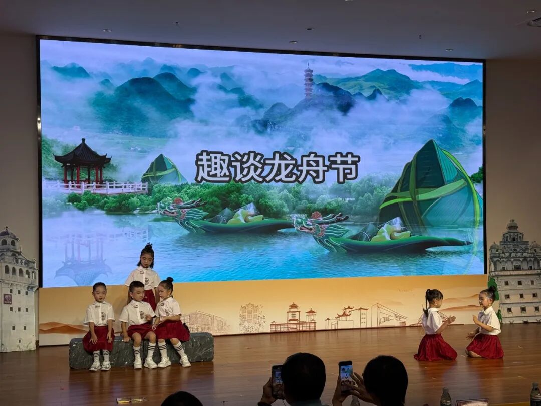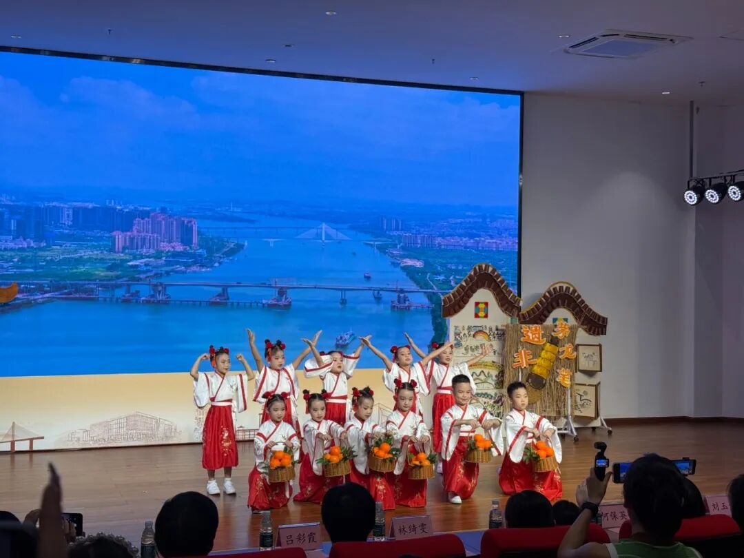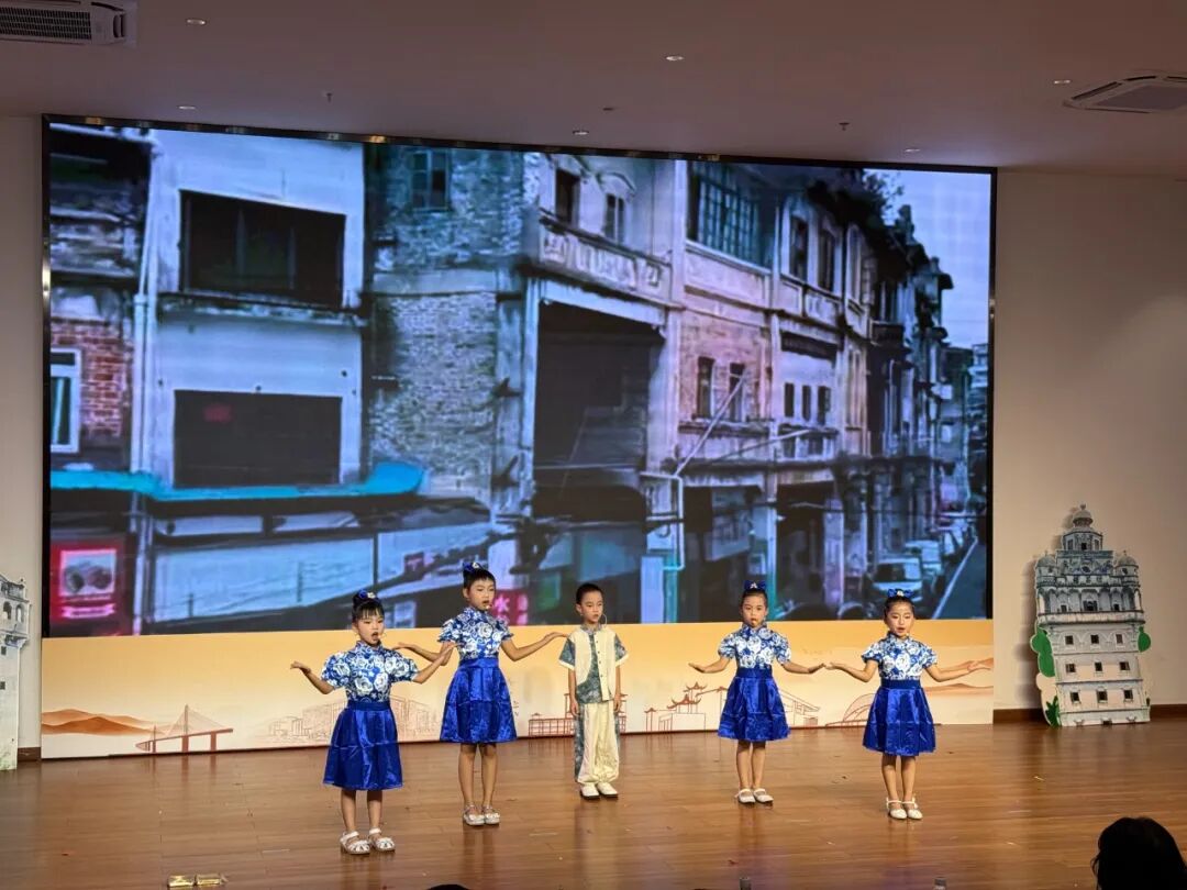 童“话”江门队以《童“话”江门》勾勒侨乡山水画卷,粤语萌娃队凭《趣谈龙舟节》再现传统节庆盛景;孖辫囡囡队通过《广府童谣串烧》串联广府文化记忆;侨韵童谣队以《碉楼边的 “金山谣”》讲述华侨奋斗史诗。孩子们用清澈童声,让侨乡历史可听、可感、可忆,推动传统文化在当代语境下实现创造性转化。