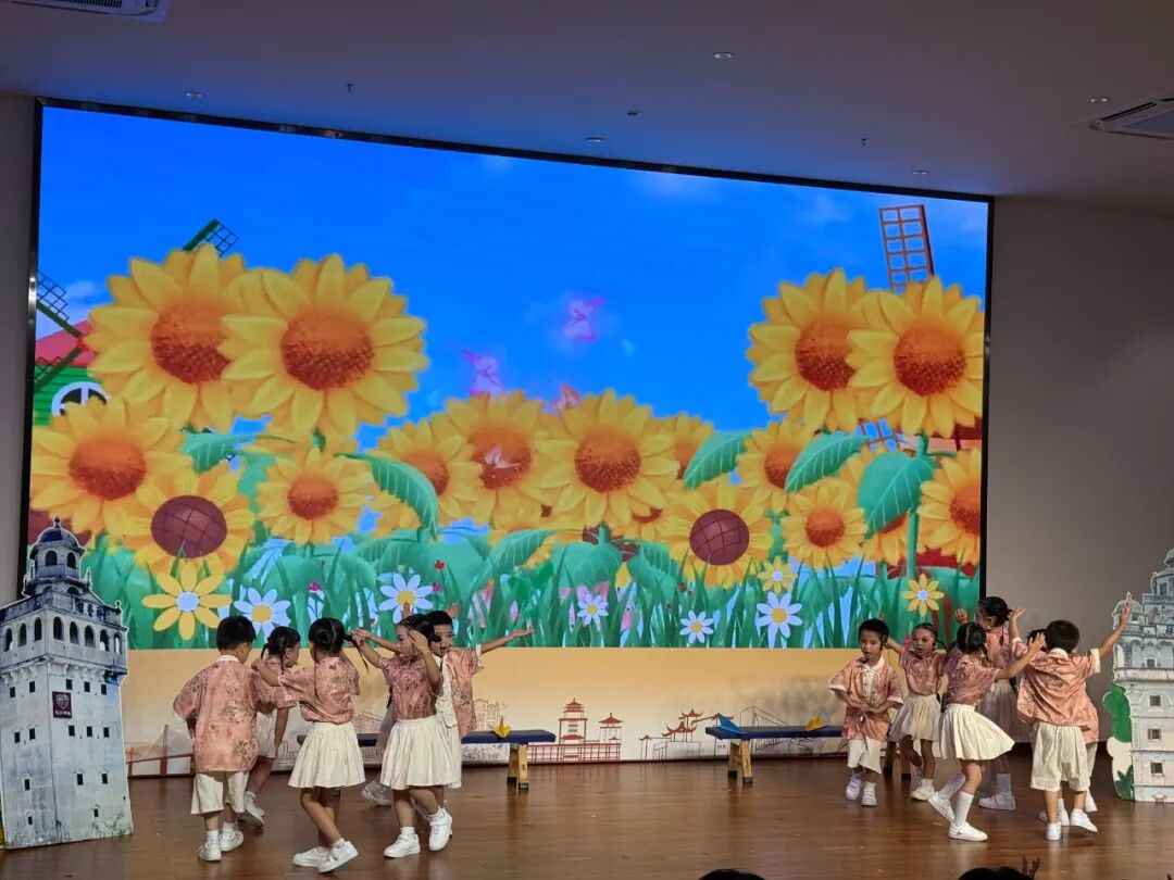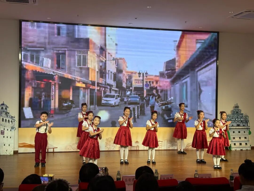 在本次展演中,备受期待的特邀队伍-江门市第一幼儿园,带着精心准备的作品《蓬江河畔我长大》登上舞台,用稚嫩却充满活力的歌声,传承侨乡文化精神。