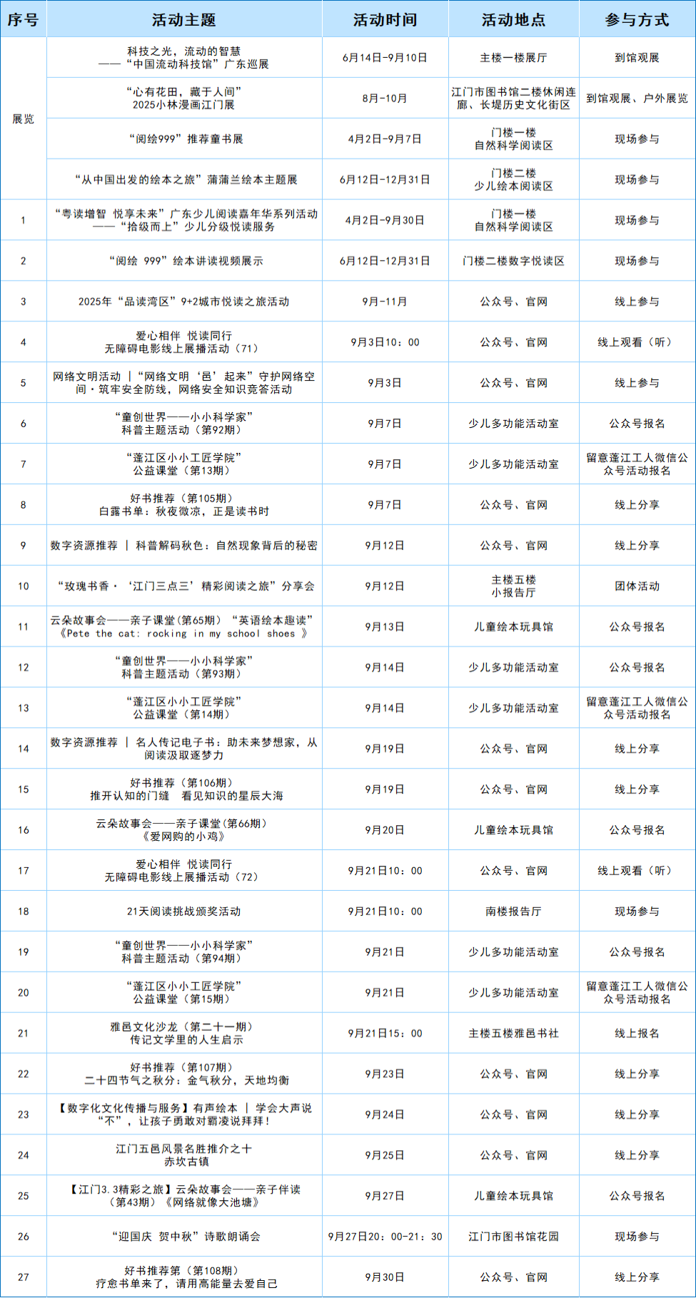 书香迎新季,阅启新篇章 | 江门市图书馆九月文化活动