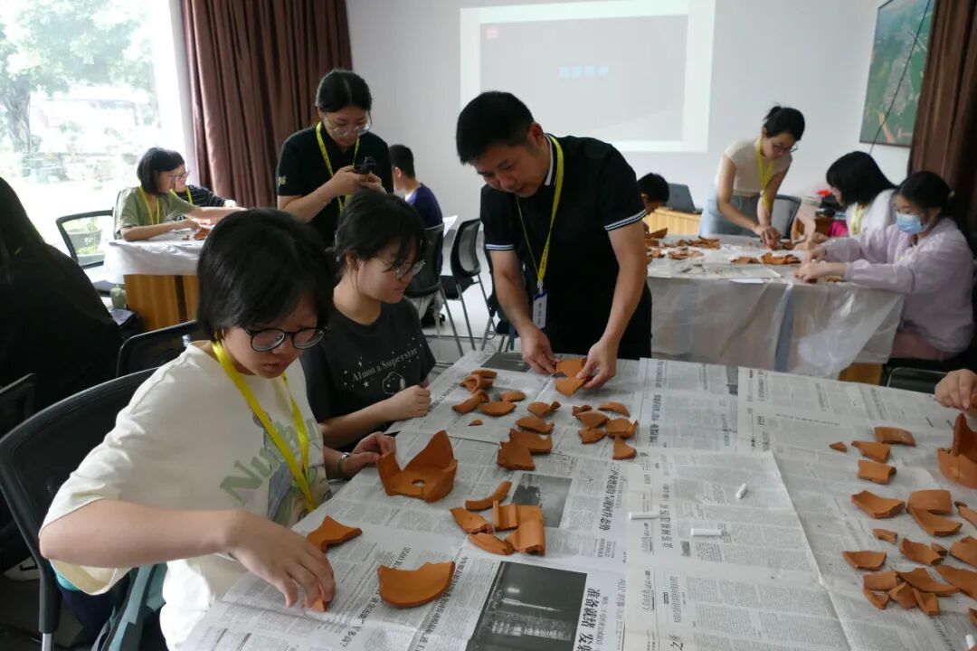 本次考古夏令营为期三天:首日,学员们实地参观了省内的考古遗址类博物馆,广州南汉二陵博物馆、南越王博物院。次日,学员通过器物碎片拼对与修复课程,初步学习陶瓷文物保护与修复的知识和流程。第三日上午,学员学习文物拓印理论后动手实践,体验出土陶片的纹饰拓印;下午,学员通过考察白沙祠建筑结构和实地测量,学习古建筑绘图知识。