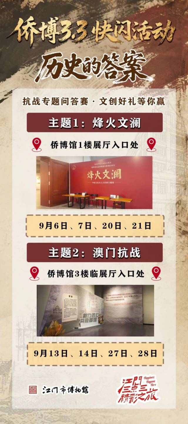 结合馆内澳门抗战专题展览,解锁战时澳门的独特角色与华侨爱国事迹,答题互动更有多重惊喜待您发现!