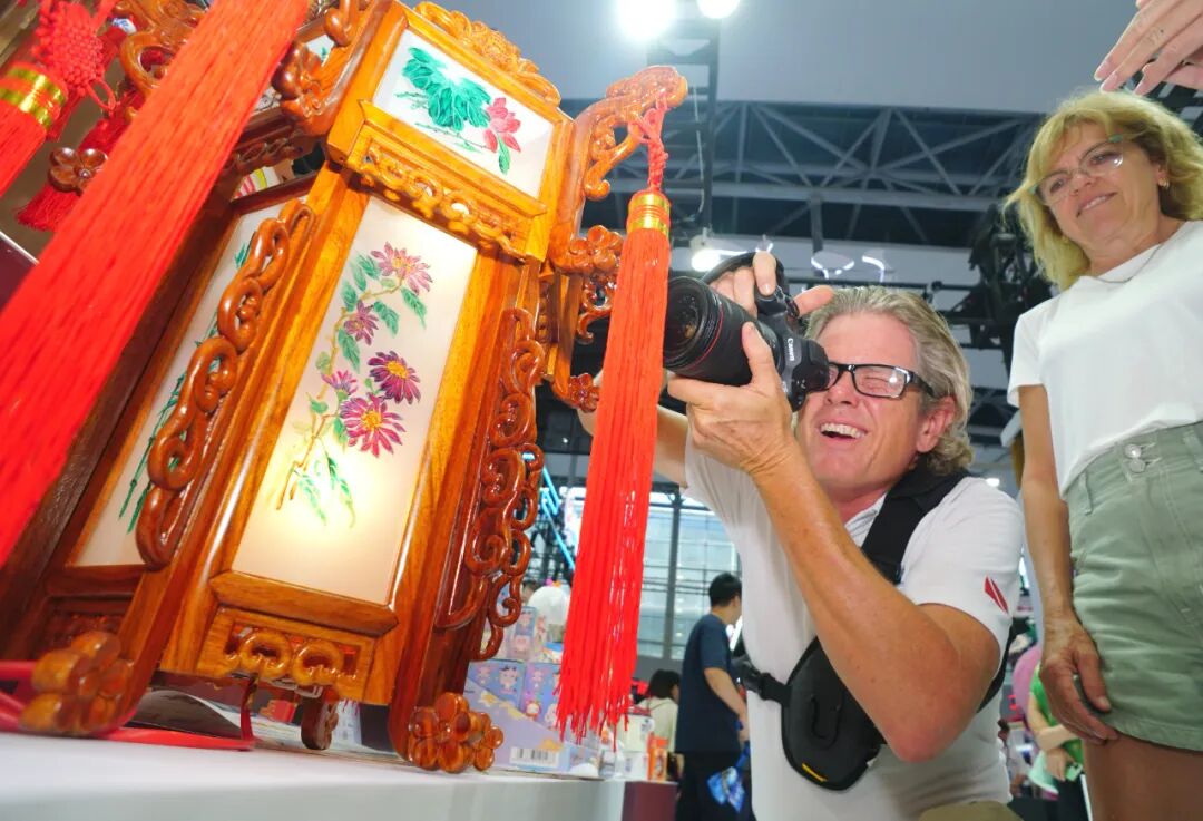 文旅手信展销区同样热闹非凡。琳琅满目的文创产品让侨乡特色传统文化“活”了起来,成功吸引了国内外众多参展人员和客商的目光。