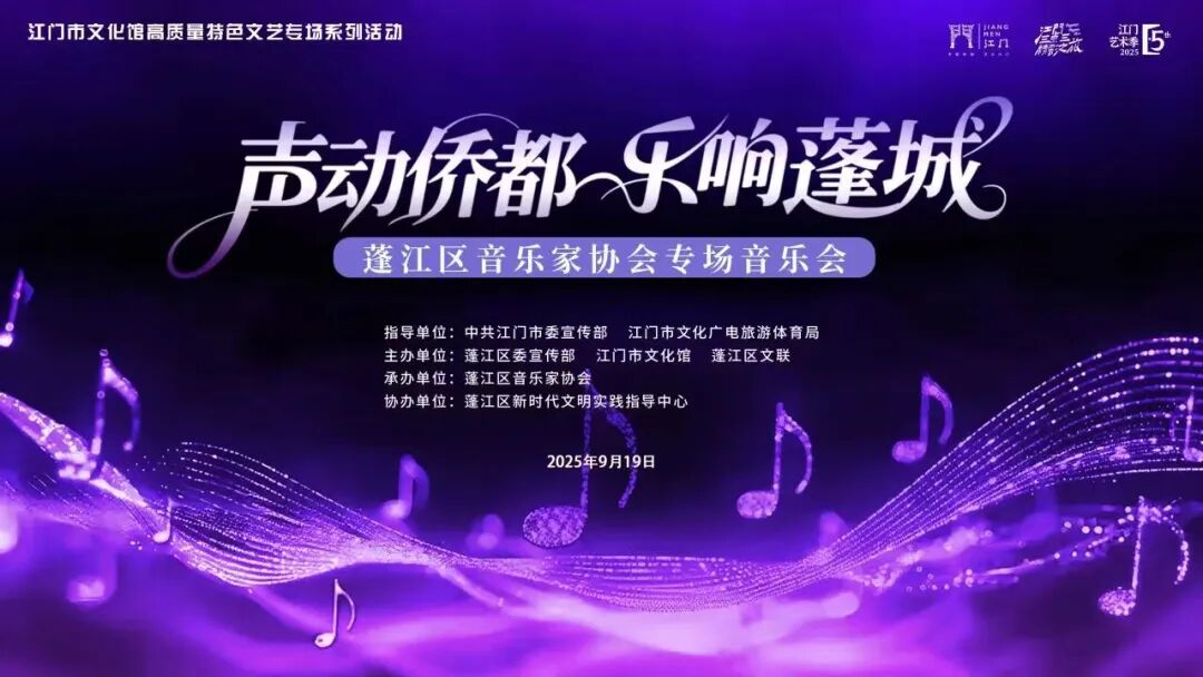 9月19日晚上,由中共江门市委宣传部、江门市文化广电旅游体育局指导,蓬江区委宣传部、江门市文化馆、蓬江区文联联合主办,蓬江区音乐家协会承办,蓬江区新时代文明实践指导中心协办的“声动侨都·乐响蓬城”蓬江区音乐家协会专场音乐会圆满举办。这场音乐会作为第五届江门艺术季重点活动,是江门市文化馆高质量特色文艺专场系列活动的重要一环,用流淌的旋律为市民带来了一场沉浸式的听觉享受。