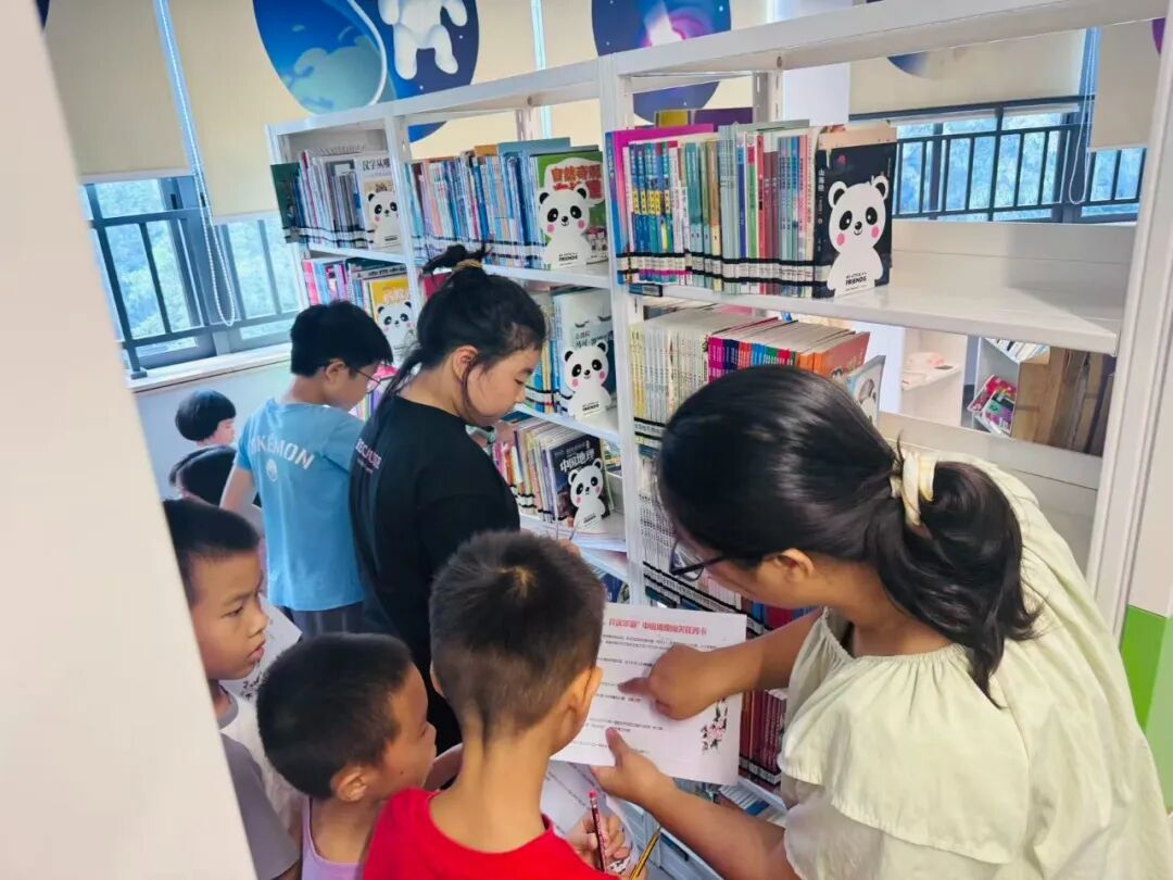 活动期间,江门市图书馆少儿馆洋溢着喜庆氛围,任务卡领取处早早围满了跃跃欲试的小读者。他们领取 “寻迹中华,共庆华诞” 任务卡,根据闯关说明与示意图,寻找所属地理区域、找寻相关图书、搜寻地理指导员,对每个神秘关卡都充满 “闯关” 的期待。