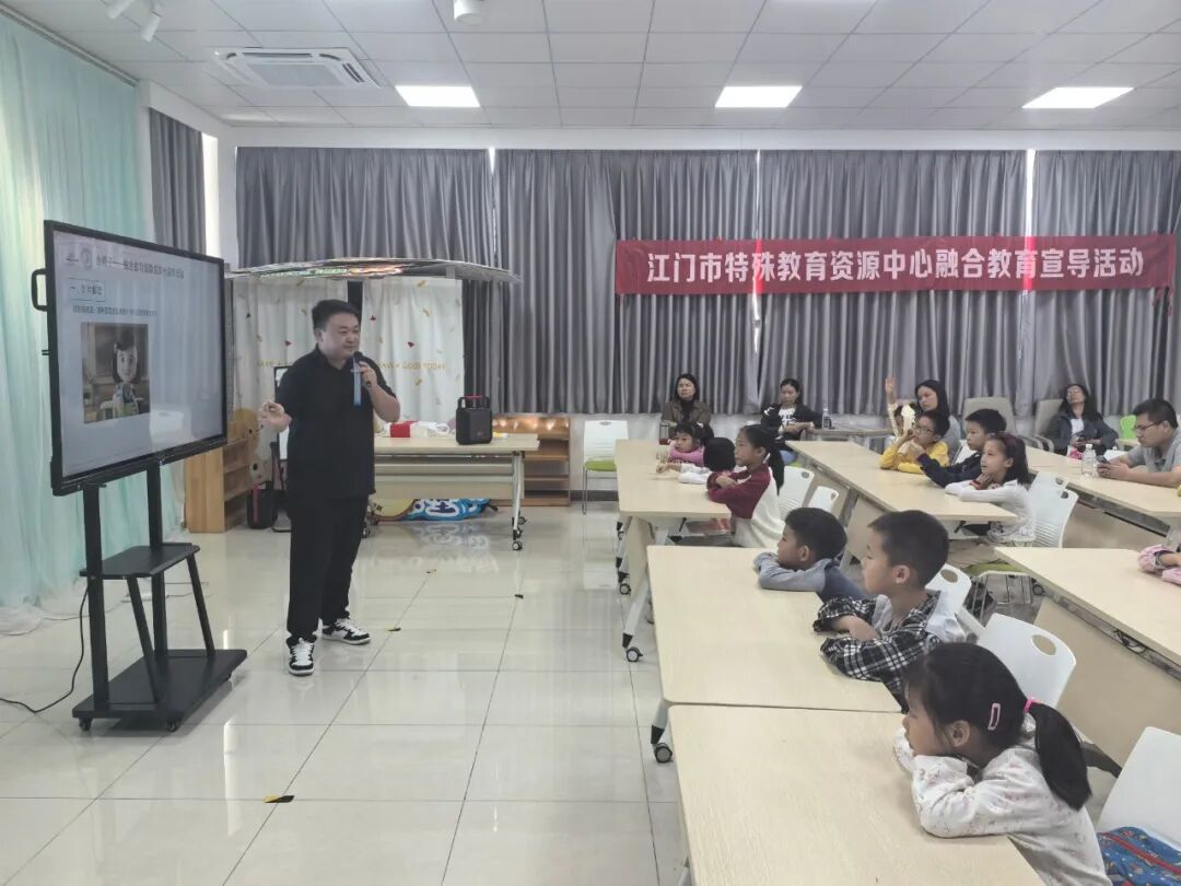 随着活动启动,主持人李佳凝率先亮相,向在场的小朋友和家长们阐述活动初衷,帮助大家初步认识这场融合教育宣导活动。紧接着,她热情请出杨浩杰老师。杨老师带着亲切的笑容,聚焦《小绳子》这部核心影片,用生动的语言讲解了影片的核心内容与亮点,并提到选片是为了通过温暖剧情,让孩子们理解包容多样、友善共处的道理,现场对影片的期待值瞬间拉满。