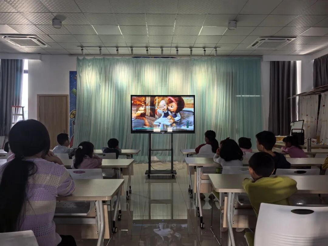 观影结束后,“融合课堂” 互动环节随即开启。杨浩杰老师再次走上台前,带领孩子们回顾影片中的精彩细节。他通过提问的方式,引导孩子们思考影片中主人公的行为背后所蕴含的意义,比如 “为什么他们会用小绳子连接彼此?”“在生活中,我们应该如何对待和我们不一样的小伙伴?” 孩子们积极举手发言,分享着自己的观影感受和想法,稚嫩的话语中却充满了对友谊和包容的理解。杨老师耐心倾听每一个孩子的回答,并适时进行引导和总结,让孩子们在轻松愉快的氛围中,进一步加深了对融合教育理念的认知。