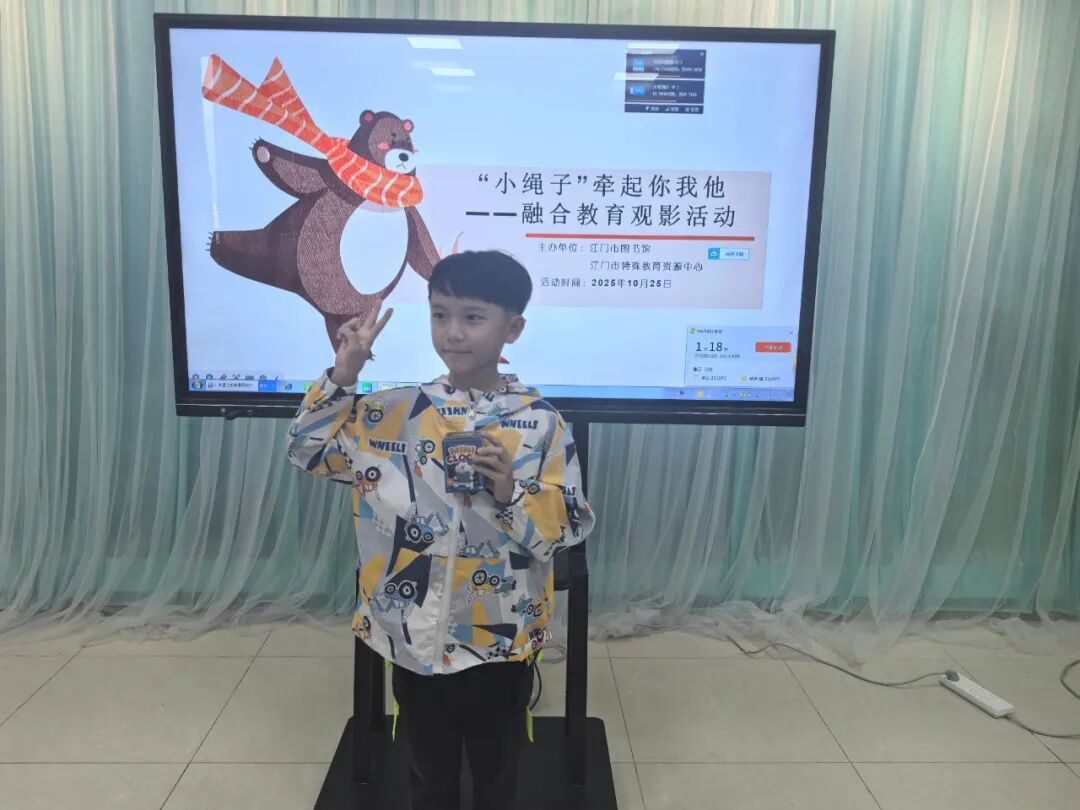 10月25 日下午,江门市图书馆内静候一场温暖之约。这场以 “小绳子” 为名的融合教育观影宣导活动,正带着 “接纳差异” 的初心,准备与大小朋友们温柔相遇。活动由江门市图书馆与市特殊教育资源中心联合策划,通过观影与互动形式,向亲子家庭传递融合教育理念,让理解与包容的种子在孩子们心中悄然生根发芽。