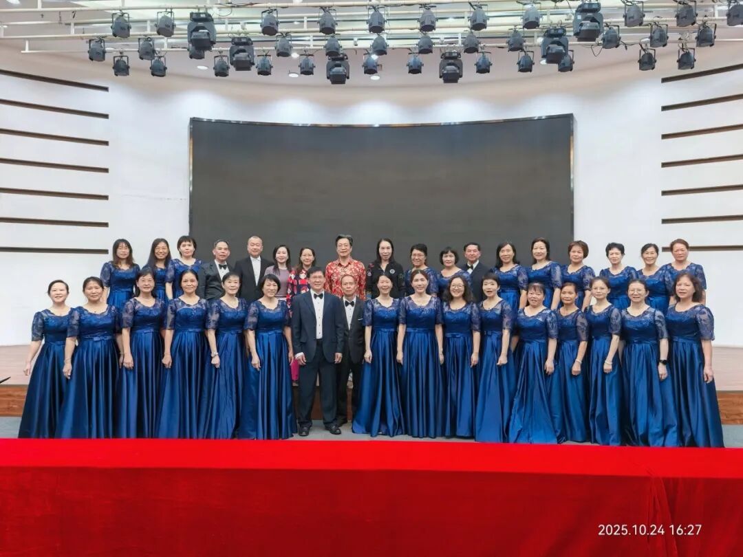 这份成绩离不开坚实后盾:在江门市文化馆全力支持与鼓励下,32名队员在指挥成燕君、钢琴伴奏龚美美的带领下,以短时间集训攻坚克难。他们克服混声配置短板,反复打磨声部融合与情感表达,最终在舞台上以饱满状态呈现作品张力——深蓝色演出服的整齐队列中,成员们用真诚的歌声诠释艺术追求,展现出江门中老年音乐爱好者的奋进风貌。