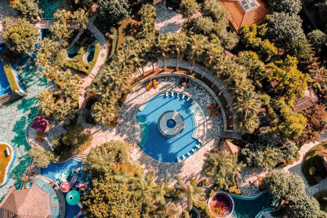 山泉湾温泉内有30多个特色温泉泡池,以“健康养生”为文化底蕴,快乐、悠闲为主导,在这里,你可以春沐百花夏逐浪、秋浸八珍冬品泉,泡在温泉水里,别有情调。