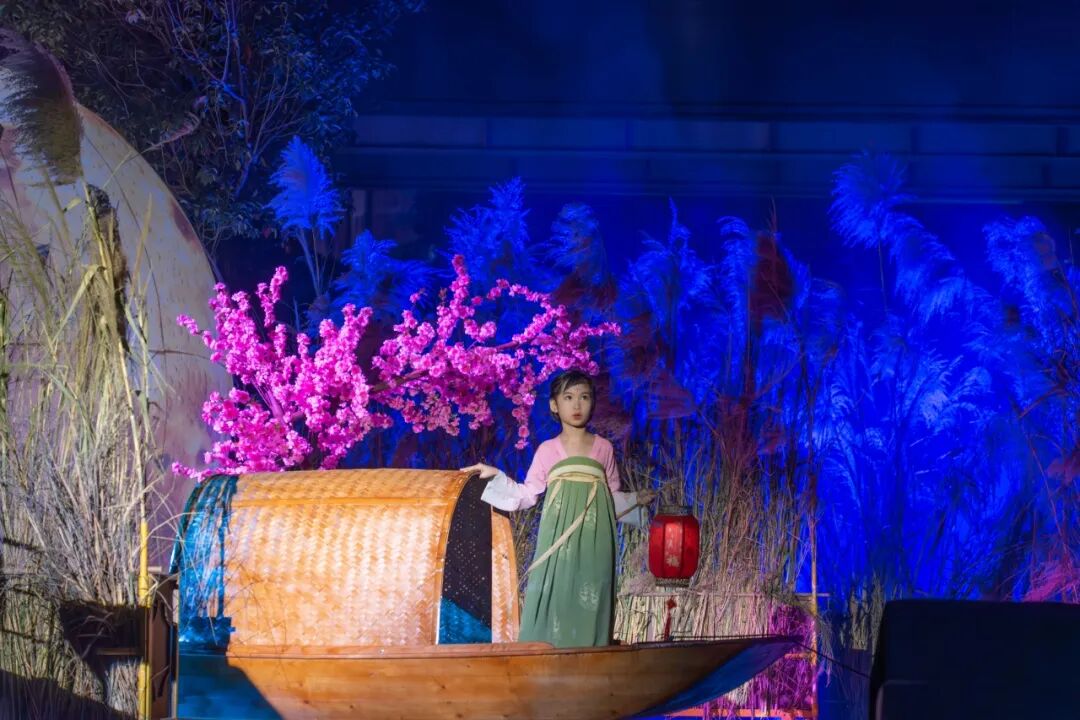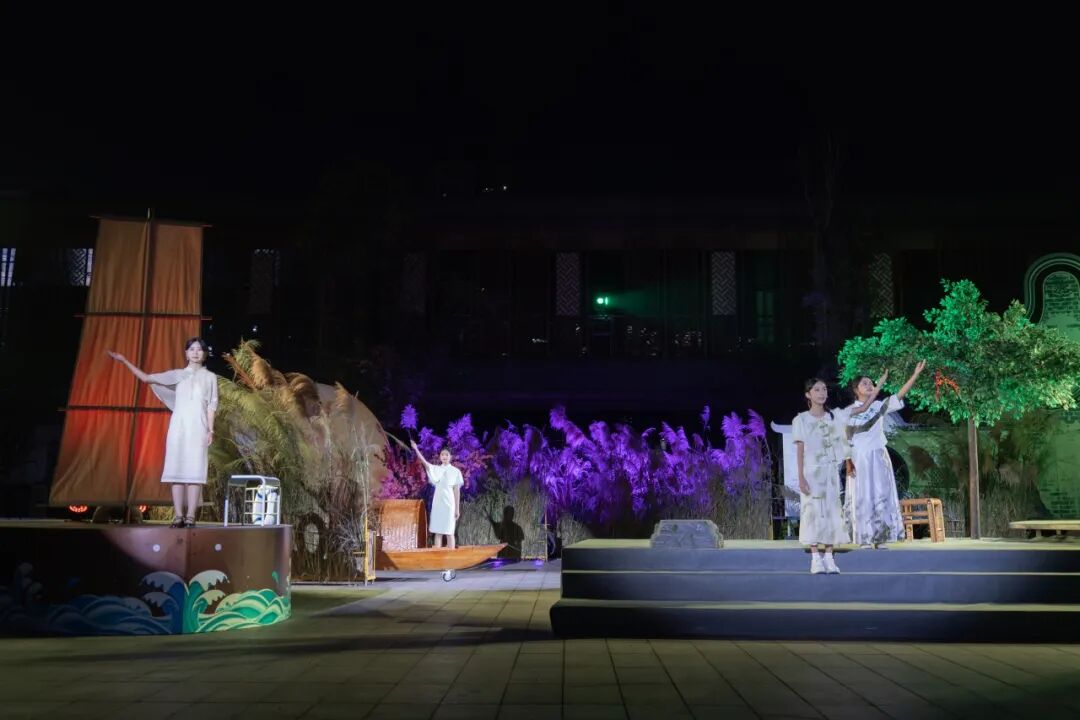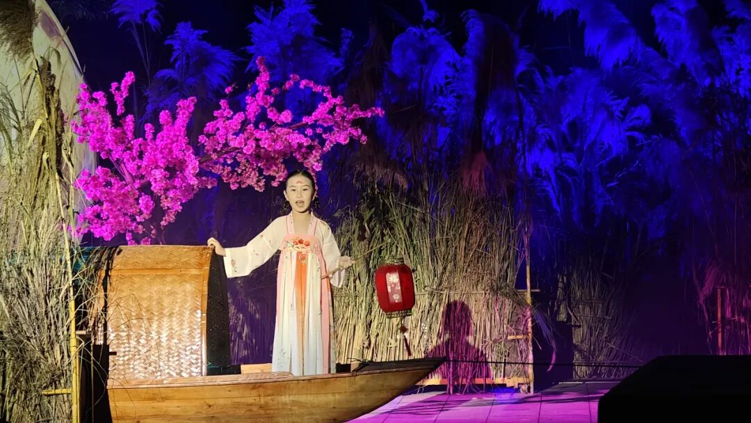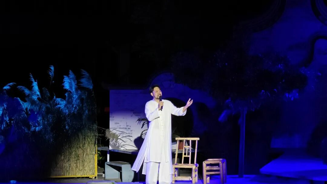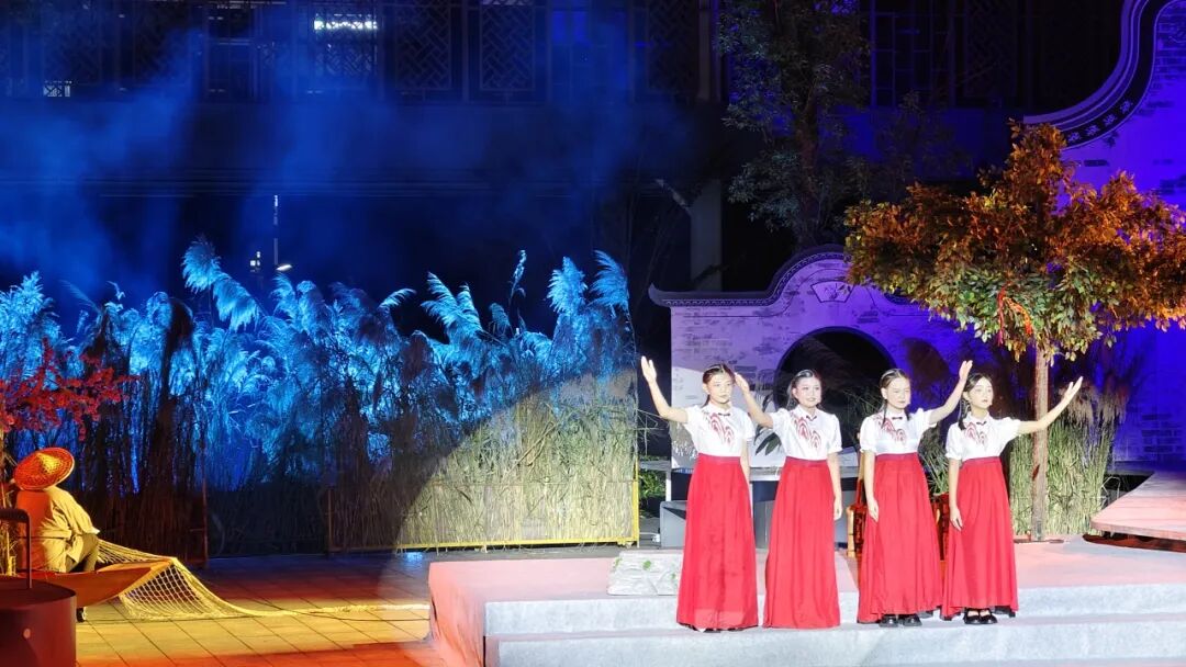 朗诵会别出心裁,以三十三墟街的市井烟火、蓬江河的粼粼波光与远航帆影为灵感,打造沉浸式实景舞台。演出以经典重阳诗词为引,由国家、省、市各级艺术名家、文艺骨干与朗诵爱好者同台献艺,通过朗诵、情景表演、歌曲等多元形式,依次铺展“潮起蓬江”“游子登高”“茱萸情长”“故园桑榆”四大诗意篇章。朗朗清音之中,中华传统文化的深厚底蕴与侨乡特有的缱绻情愫交织融合,如涓涓细流,缓缓浸润现场每位观众的心田。