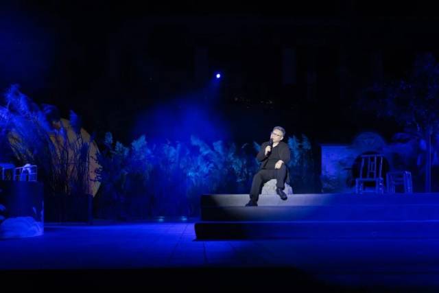 著名朗诵艺术家谢汪洋老师演绎的《河床》,更是将整场氛围推向高潮。他凭借深厚的台词功底,用沉稳而雄浑的声音,借巴颜喀拉山下的河床喻示中华大地的宽厚与雄健。从描绘河床“坚实”时的坚定,到“宽厚”时的舒缓,再到“壮阔” 时的激昂,情绪层次分明、极具感染力,让 “登高” 不仅是物理的攀登,更成为对民族精神的回望与升腾。表演结束后台下掌声雷动,久久不息。
