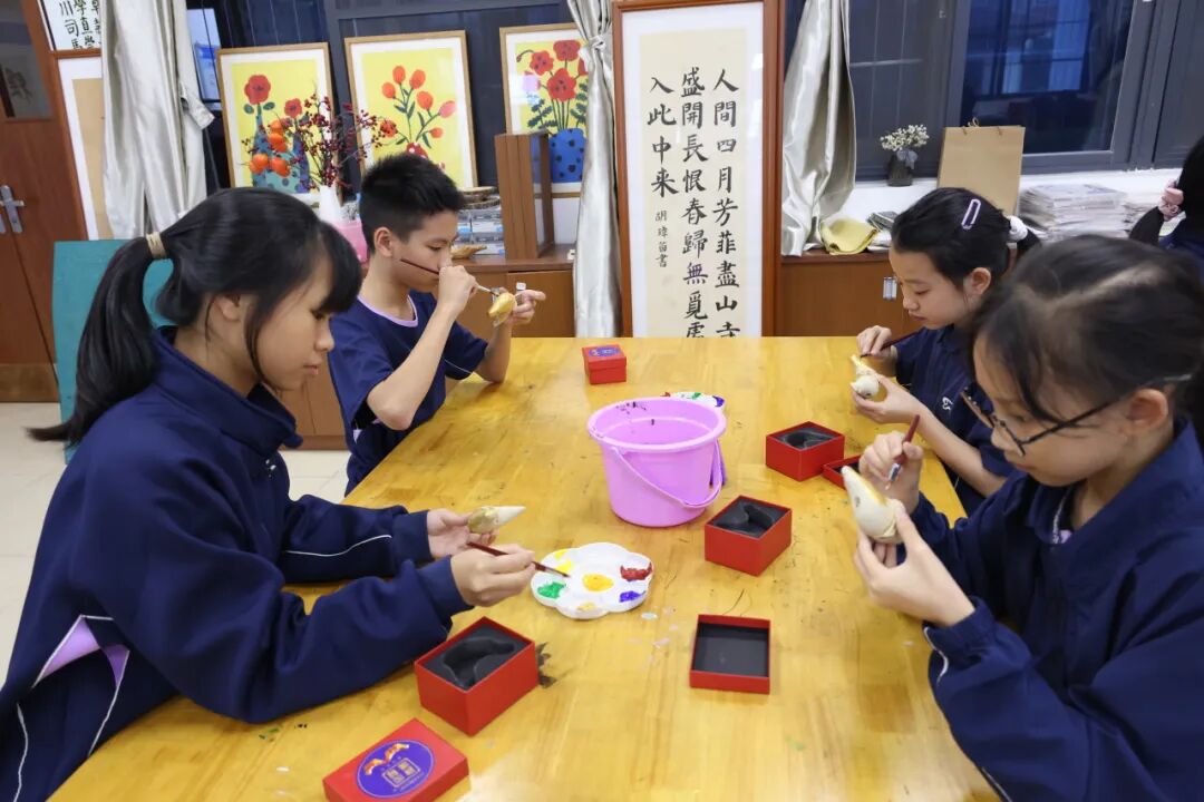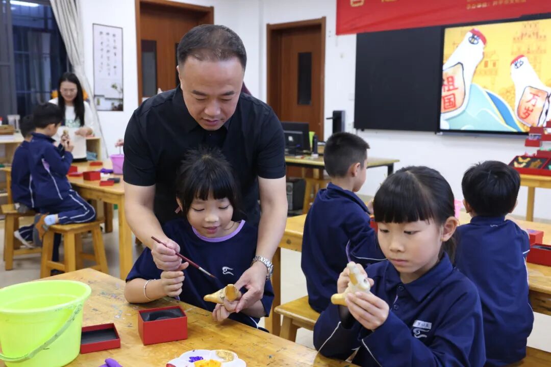 随后,在冯老师的指导下,大家进行镇濠泥鸡的制作彩绘实操。通过本次活动,碧桂园的师生深入了解镇濠泥鸡制作技艺这项传统文化的知识和内涵,体验传统文化的独特魅力。