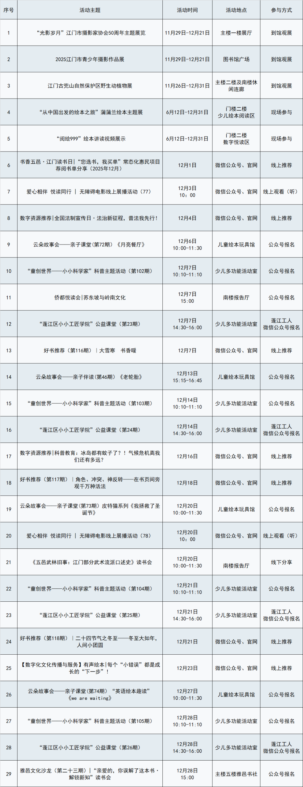 冬阳初照,书香生暖 | 江门市图书馆十二月文化活动速览