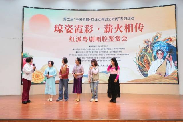 红腔雅韵承薪火,侨都粤曲忆宗师。12月11日下午,江门市文化馆多功能室内座无虚席,“琼姿霞彩、薪火相传”粤曲艺术鉴赏会在此热烈举行,为在场听众带来了一场沉浸式的粤剧艺术体验。本次活动是江门市纪念红线女诞辰100周年专场演出暨第二届“中国侨都·红线女粤剧艺术周”系列活动之一。
