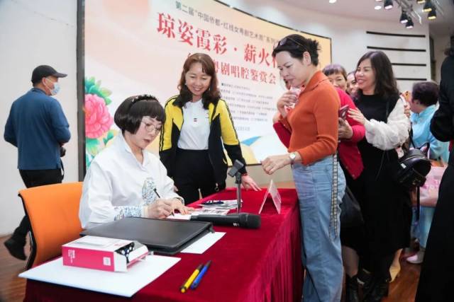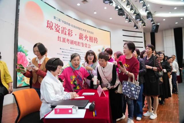 鉴赏会特邀红线女先生的关门弟子、国家一级演员、第二十届中国戏剧“梅花奖”得主琼霞老师担任主讲人。作为享受国务院政府特殊津贴的专家,同时也是世界非物质文化遗产粤剧项目珠海市级代表性传承人,琼霞老师结合自身数十年的艺术积累,深入解读了粤剧的唱腔之美、身段之韵与文化之深,生动分享了红派艺术的传承故事,并与粤曲爱好者亲切互动,指导练习红腔唱法技巧,现场气氛热烈。