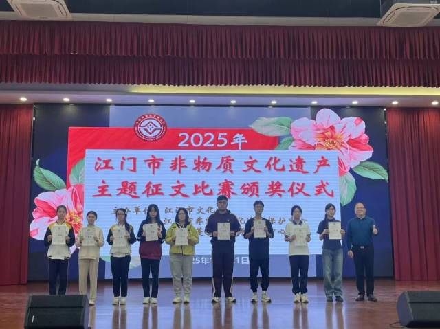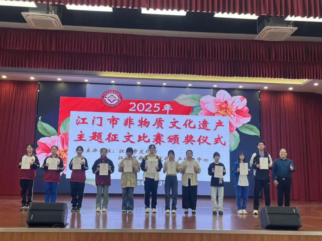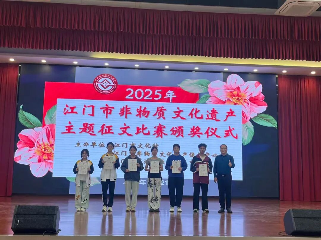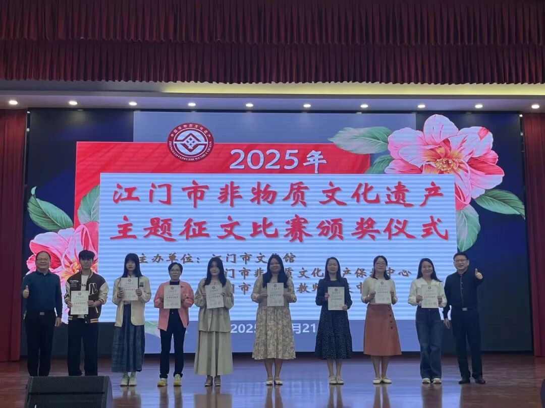 2025年12月21日上午,由江门市文化馆、江门市非物质文化遗产保护中心、江门市蓬江区教师发展中心共同主办的“2025年江门市非物质文化遗产主题征文比赛”颁奖仪式在江门市蓬江区陈垣中学隆重举行。本次活动旨在弘扬侨乡非遗,让非遗深入民心、深入校园,让广大市民和在校师生了解江门侨乡的非遗魅力。