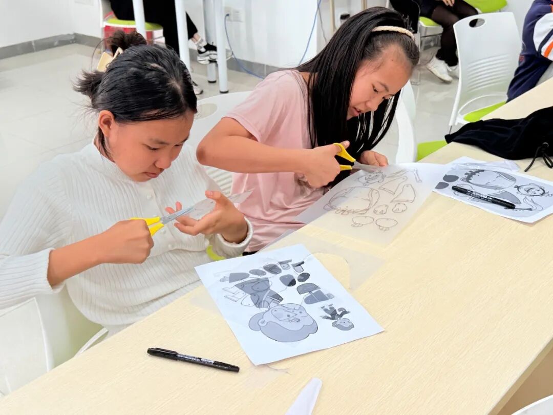皮影戏光影实践活动中,孩子们先通过实验洞悉光影形成的奥秘,探究影子与光源、物体的关联,再亲手勾勒裁剪皮影角色,以团队协作编排剧本、操控光影、默契配音,既在实操中掌握了光学原理,更让创造力与协作力在艺术表达中绽放光彩。