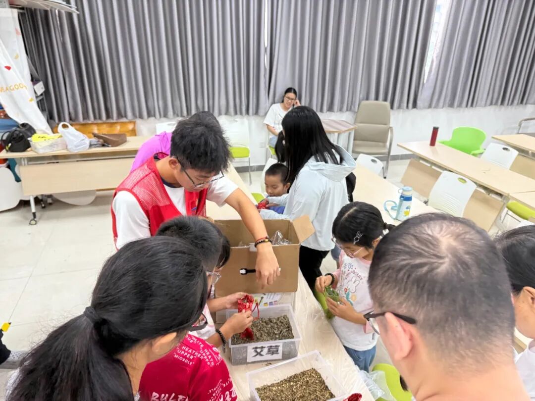 在中草药探秘课程里,孩子们穿梭于薄荷、艾草等天然药材间,仔细辨识它们的形态与气息。从学习精妙的药材配比,到亲手填充散发芬芳的香囊,再到耐心熬制传统膏剂,每一步实践都沉浸在浓郁的药香之中。