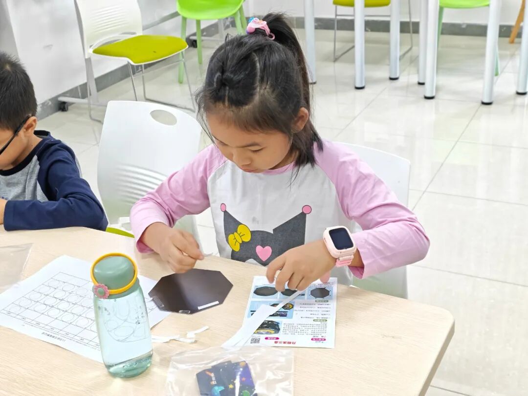 地月仪与月相探究活动中,孩子们循着 “嫦娥奔月” 的传说,借助地月仪探寻月球环形山、月海的奥秘,用月相套件复刻新月、满月的更迭,在人文诗意与科学真理的碰撞中,提升了对天体运行原理的认知。