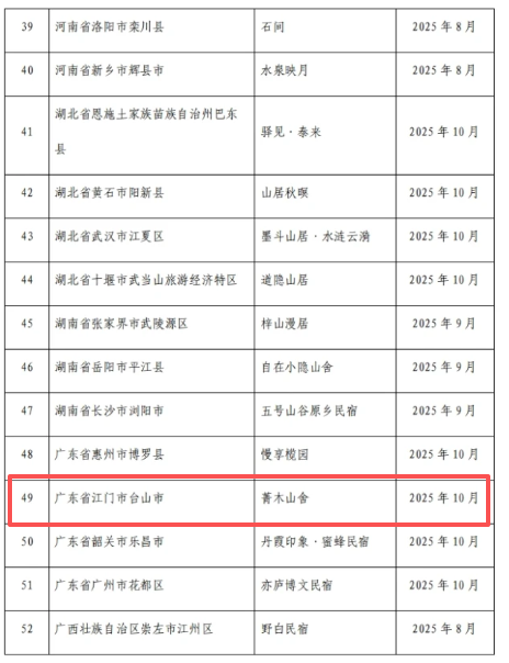 成功入选全国甲级旅游民宿公示名单