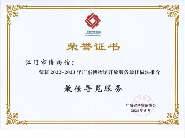 江门市博物馆脱颖而出,获评“最佳导览服务”!