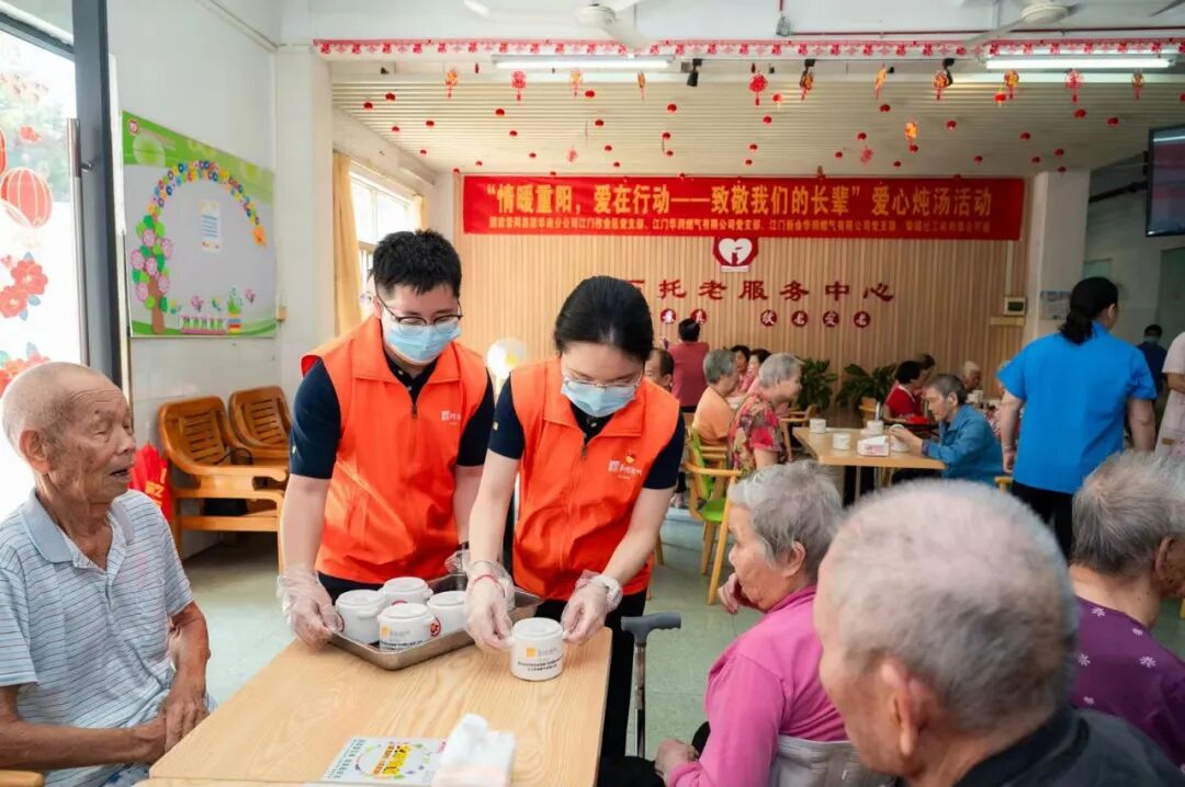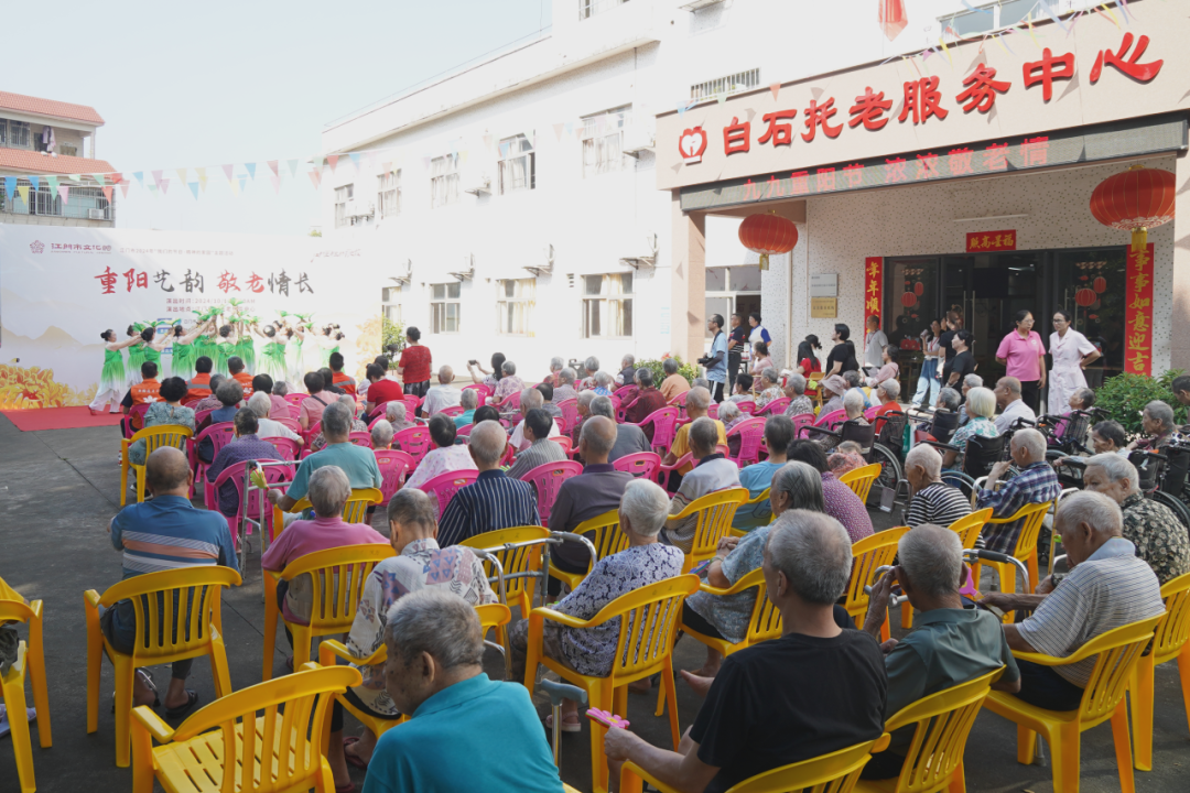 岁岁重阳,今又重阳。10月11日重阳节当天上午,江门市文化馆联合国家管网集团华南分公司江门作业区党支部、江门华润燃气有限公司党支部、江门新会华润燃气有限公司党支部等企业,在江门市蓬江区白石托老服务中心举办了“我们的节日——重阳艺韵•敬老情长”演出活动,活动对托老服务中心所有长者送上慰问品、“华润爱心炖汤”和节日祝福,把关怀与温暖送到老人们的心坎上。