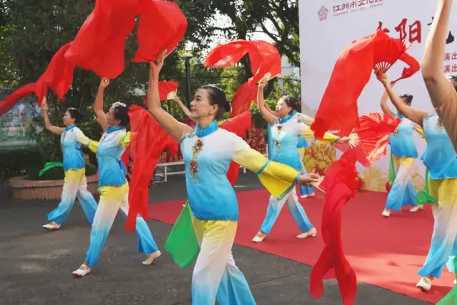 今年以来,江门市文化馆文化志愿者艺术团深入基层,累计开展社区演出、“十分钟文化圈”“2024年广东省群众艺术广场舞培训推广”等演出活动共96场,为市民群众奉上了丰盛的“文化大餐”,开创了公共文化服务新局面,展现了城乡文明新气象。