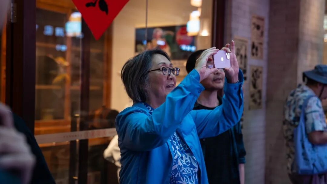 奶奶们来到唐人街展区,映入眼帘的是熟悉又亲切的景象。洗衣店、中餐店、杂货铺、中药铺、醒狮壁画……这里仿佛时间停滞的古老街区,满载着她们的回忆与乡愁。