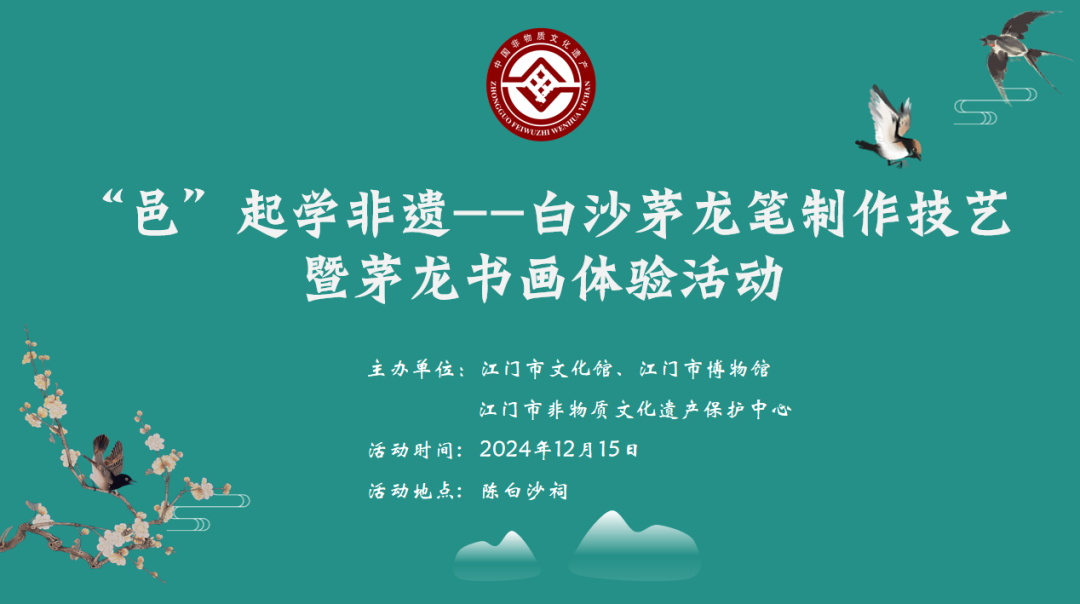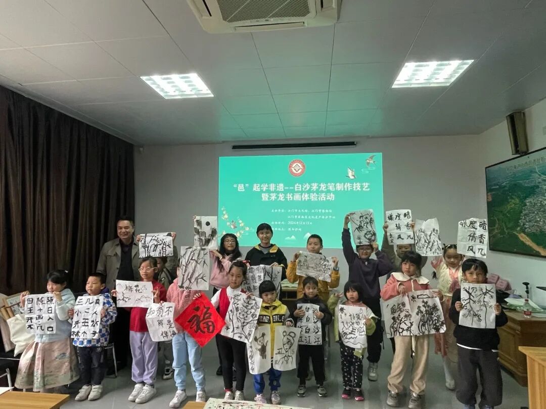 白沙茅龙笔制作技艺于2008年列入第二批国家级非物质文化遗产名录。为了让更多市民了解白沙茅龙笔制作技艺,延续活态传承,本着“保护为主、抢救第一、合理利用、传承发展”的方针,12月15 日下午,由江门市文化馆、江门市非物质文化遗产保护中心、江门市博物馆精心策划的“邑”起学非遗——白沙茅龙笔书法非遗体验课在陈白沙祠顺利举办。活动邀请了该非遗项目的省级代表性传承人张瑞亨老师为学员们教授茅龙笔书画技巧,现场亲子家庭约30人参加了活动。