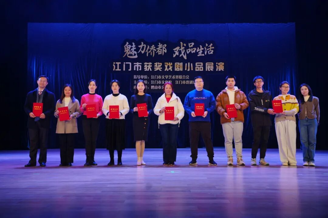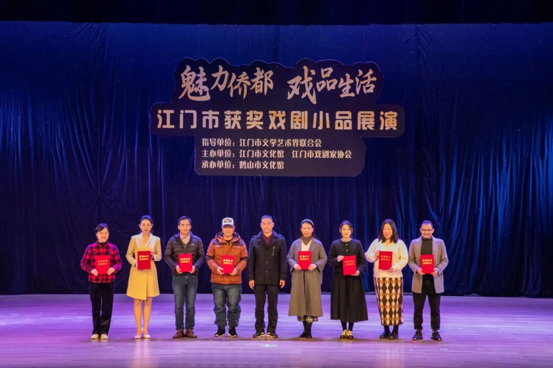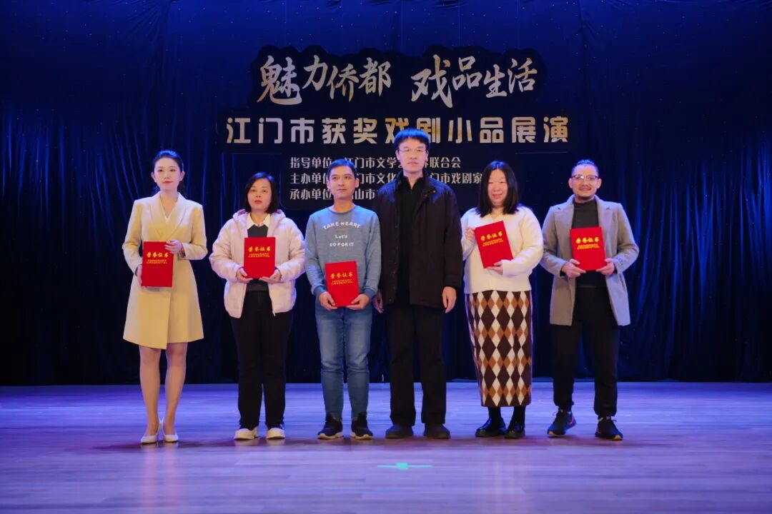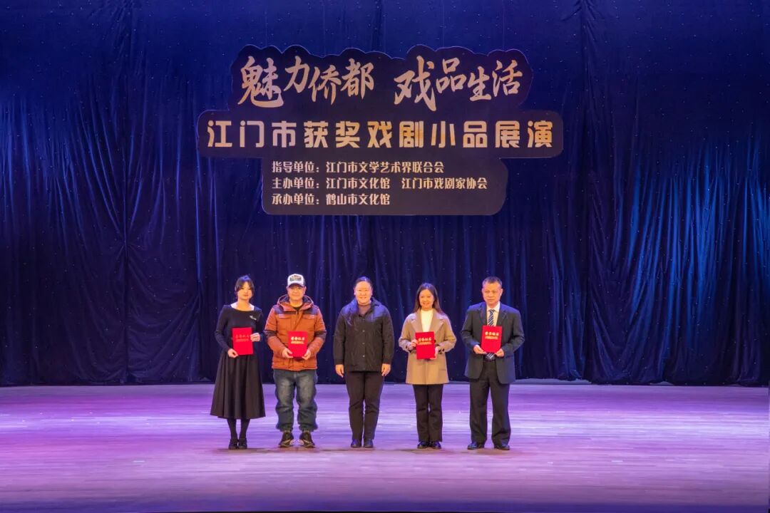 展演活动当晚,还举办了“演绎时代好戏,讲述侨乡故事——庆祝中华人民共和国成立75周年江门市微短剧、小戏小品创作大赛”颁奖仪式。本次大赛由江门市文学艺术界联合会主办,江门市戏剧家协会承办,通过赛事发掘了更多戏剧创作、表演人才,营造了浓厚的戏剧文化氛围,进一步推动江门文化艺术的繁荣和发展。