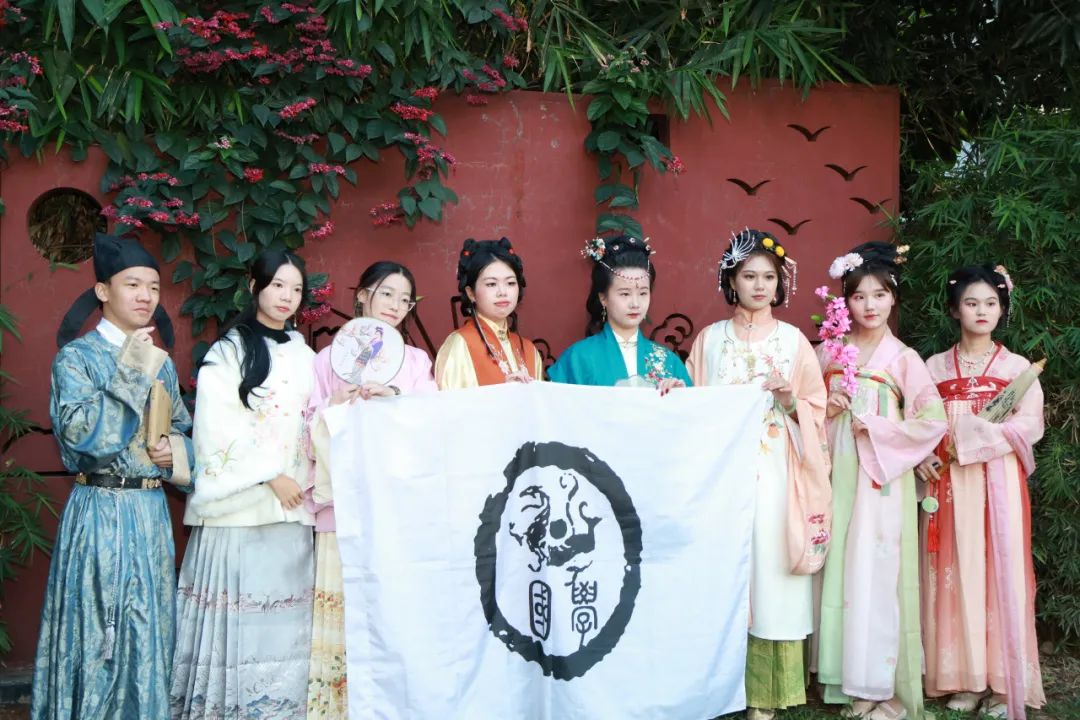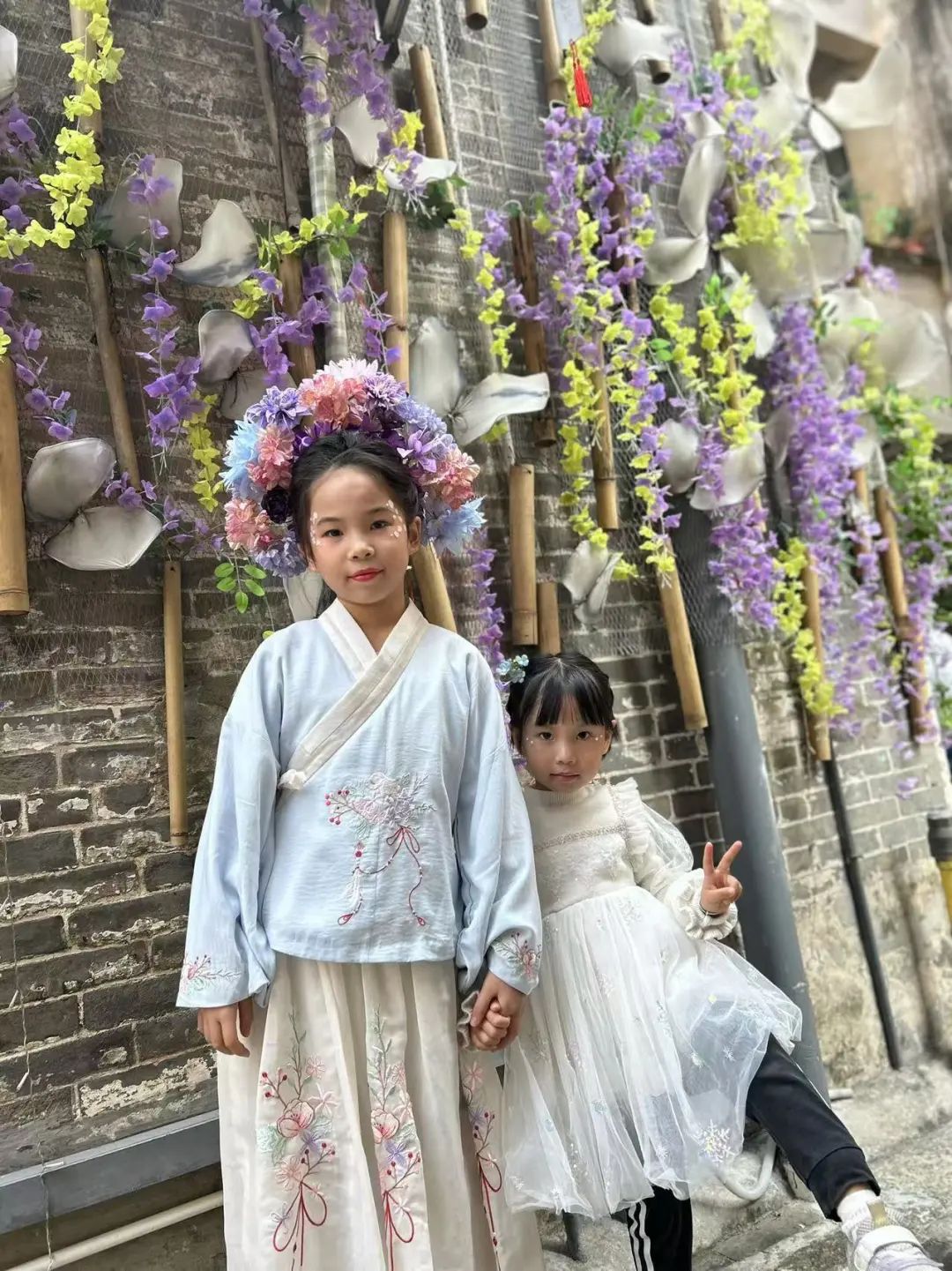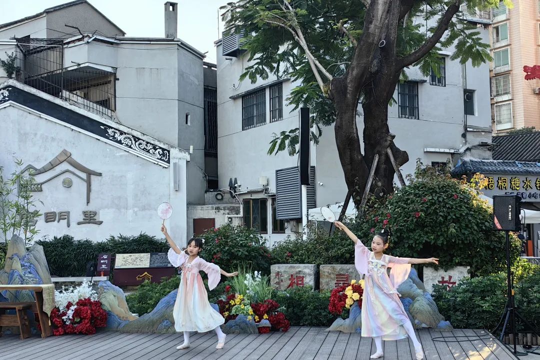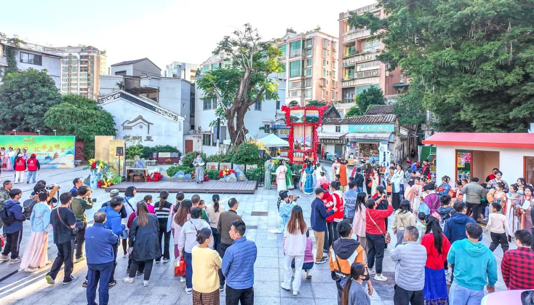 汉服巡游:江门汉服•尚夏汉文化、拾庆园、五邑大学国学社联合召集了近百名汉服爱好者参与街区汉服巡游活动。现场,爱好者们穿着秦、魏晋、南北朝、唐、宋、明等朝代的汉服各具特色的汉服,与启明里古朴的风貌相得益彰,就像一幅流动的历史画卷,让人们仿佛置身于历史的长河之中。