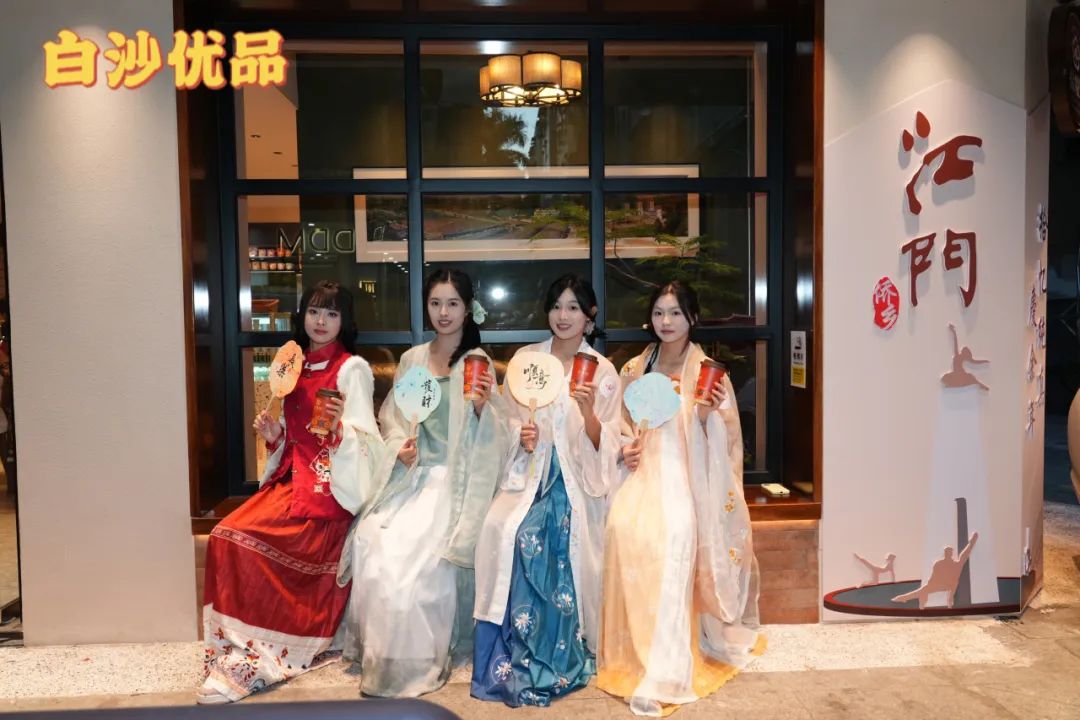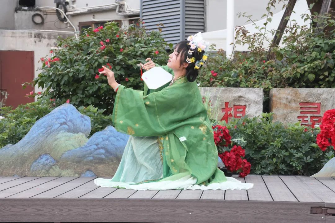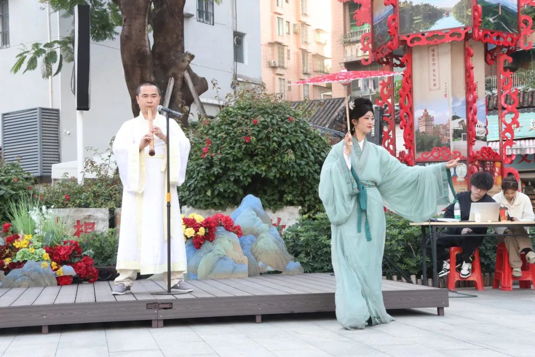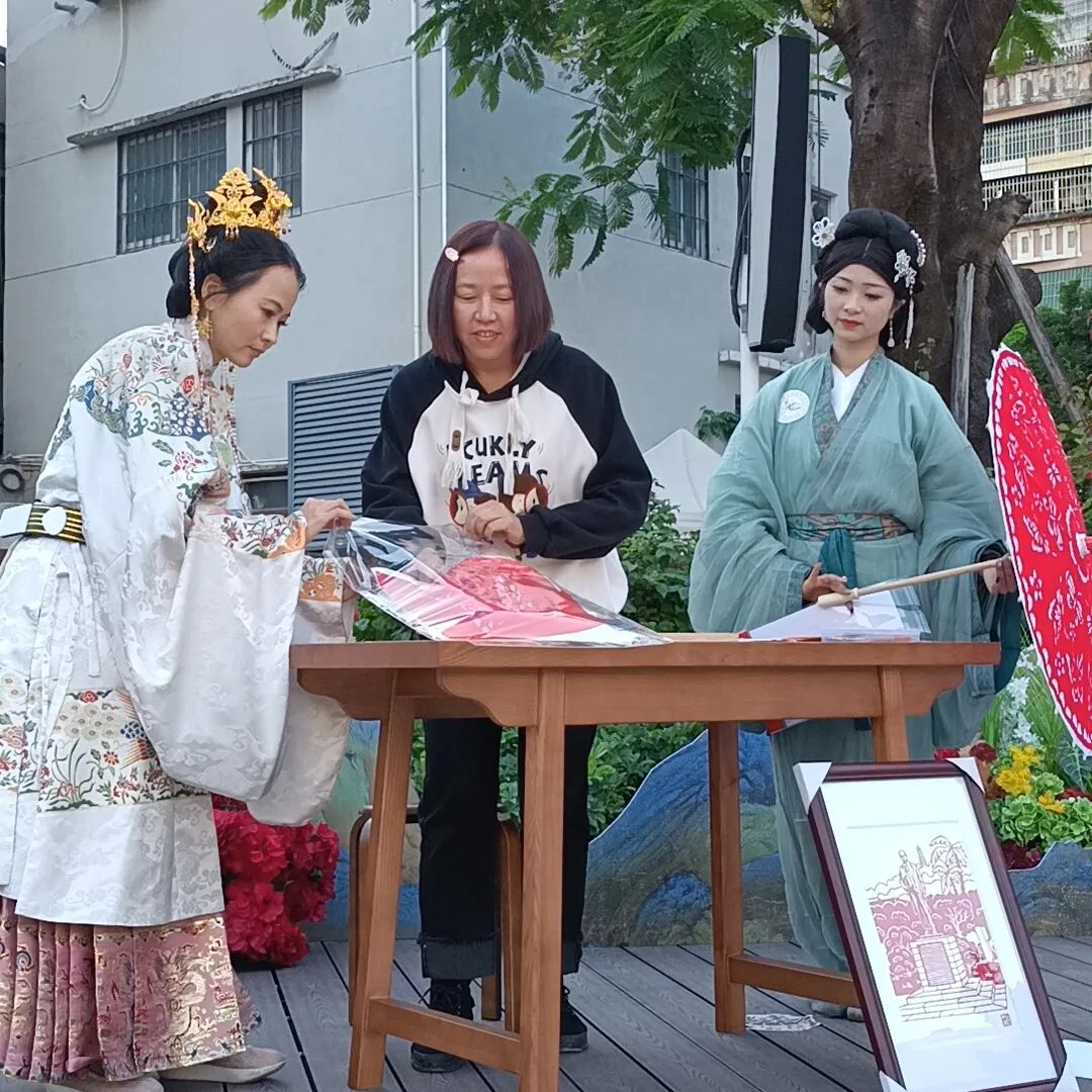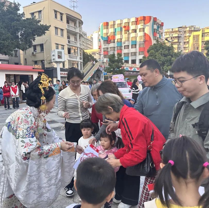 汉服走秀:来自五邑大学、江门汉服•尚夏汉文化的汉服爱好者们身着各个朝代特色鲜明的汉服,轻盈地穿梭在启明里广场和大街小巷。大家仿佛能看到古代文人雅士的翩翩风采,在现代的时空里重现。