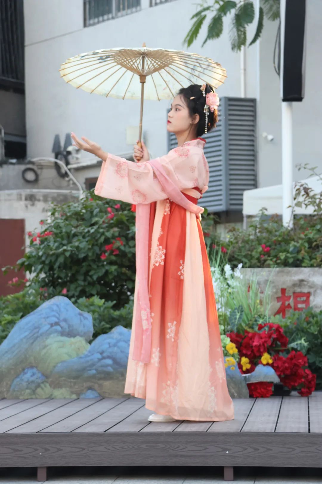 舞动风华:国风舞蹈表演如同画卷在眼前展开,来自江门汉服•尚夏汉文化、冰之韵艺术中心的舞者们身着汉服,灵动地舞动着身姿。