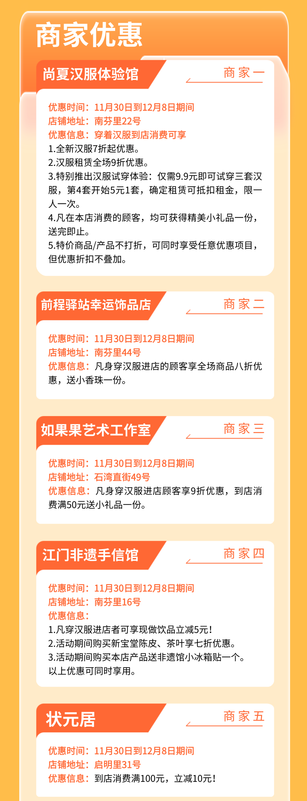 众多优惠活动将持续到12月8日哦!诚挚地邀请广大市民穿上汉服,齐聚启明里,共同体验传统文化在现代社会的传承与创新。
