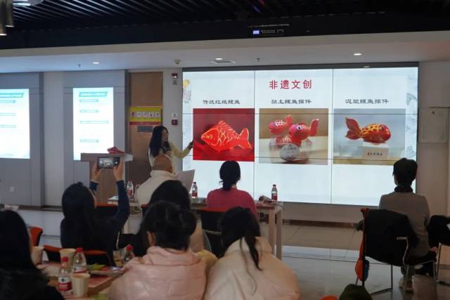 此活动邀请了外海生恭鲤鱼手工艺品市级非遗代表性传承人陆月如现场授课,分享她的传承故事与创作心得。在传承人的指导下,女性青年人才纷纷动手尝试,从黏土的揉捏到精美鲤鱼扣的呈现,大家不仅体验到了非遗技艺的精妙,更深刻理解了其背后承载的文化意义与匠人精神。