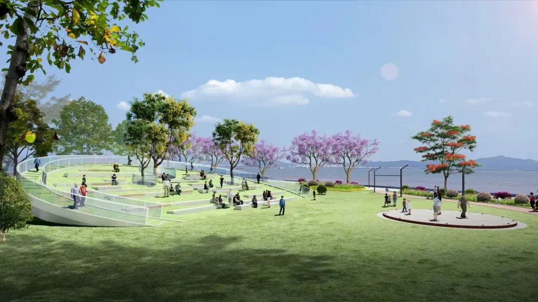 新海岸公园位于新会区新洲路入口处,总面积约25600平方米,分为亲水台、生态廊、咖啡馆、水上栈道、游船码头五个特色区域。公园以白色海浪为主色调,将海洋、鹭鸟、红树林等生态元素融入设计中,简洁清新。新海岸公园的独特魅力,吸引众多游客前来游玩。
