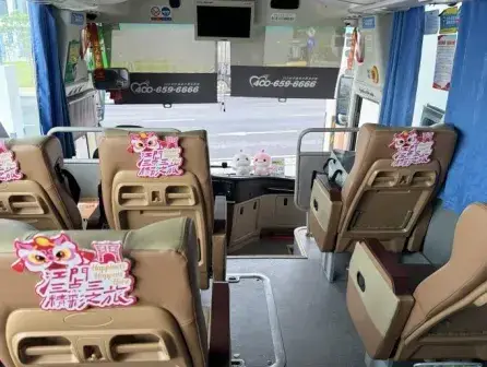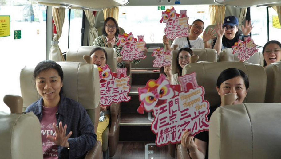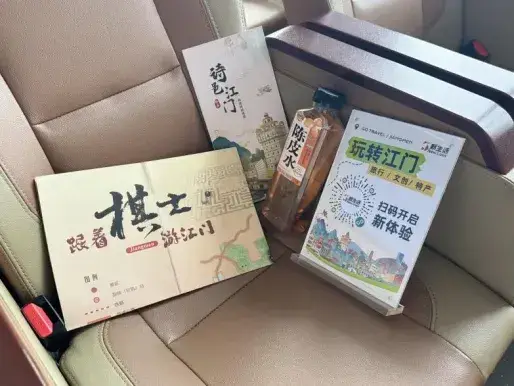 当天一早,在深圳机场出发的旅游来到首发站,抢鲜体验江门大湾区旅游直通车。远远望去,直通车车身格外醒目:开平碉楼、骑楼长廊、赤坎古镇……一个个侨乡特色元素让直通车“变身”宣传侨乡文化的移动窗口。车内也经过精心的布置,满满“江门三点三精彩之旅”的元素和贴纸。