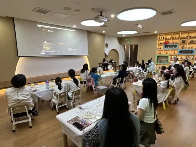 现场社教人员为大家讲述团扇的历史起源、形制与功能,带领大家鉴赏敦煌壁画中的团扇,了解敦煌壁画中九色鹿的故事、如意轮观音像的寓意、反弹琵琶的造型。