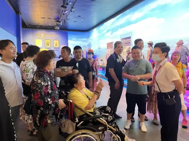 为感谢江门市博物馆对残疾人事业的一贯支持,黄锦尧副理事长向市博物馆颁发了感谢状。随后残疾人专门协会代表分成两组,先后参观“根在侨乡——江门华侨华人历史陈列”,进一步了解江门侨乡的历史文化,并体验博物馆的特色文化活动,包括“投壶”“侨乡壁画找茬”“五邑特产连线题”“唐人街舞狮互动”,残疾人在参与中增长华人华侨历史文化知识,感受传统文化的魅力,进一步增强对中国侨都的归属感。