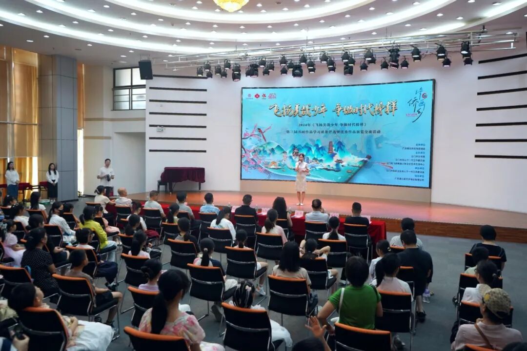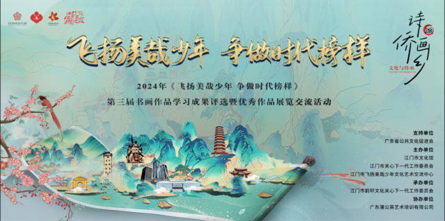 2024年“飞扬美哉少年 争做时代榜样”第三届书画优秀作品展览在江门市文化馆一楼展览厅进行展出。参展作品内容丰富,涵盖国画、油画、水彩画、版画、毛笔书法等多个艺术门类,侨乡青少年用笔墨和创意诠释着他们对世界的认识、对历史的认识、对艺术的追求,展示了他们天马行空的艺术思维和审美感知,从孩子的视角表达了对党、对祖国、对家乡、对生活的热爱之情。