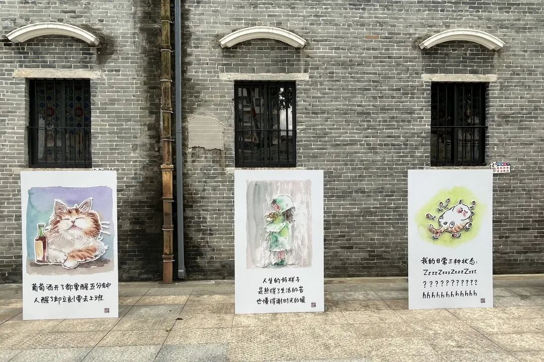 本次小林漫画户外展是江门3.3精彩之旅和第四届江门艺术季墟街漫游板块的重点活动项目之一,延续了小林漫画幽默风趣的风格。简单流畅的水墨线条和富有哲理的短句,展现了生活中的点滴和人生百态,充满创意与趣味。市民朋友可根据个人的时间安排随时前往打卡,感受诗邑江门的浪漫。
