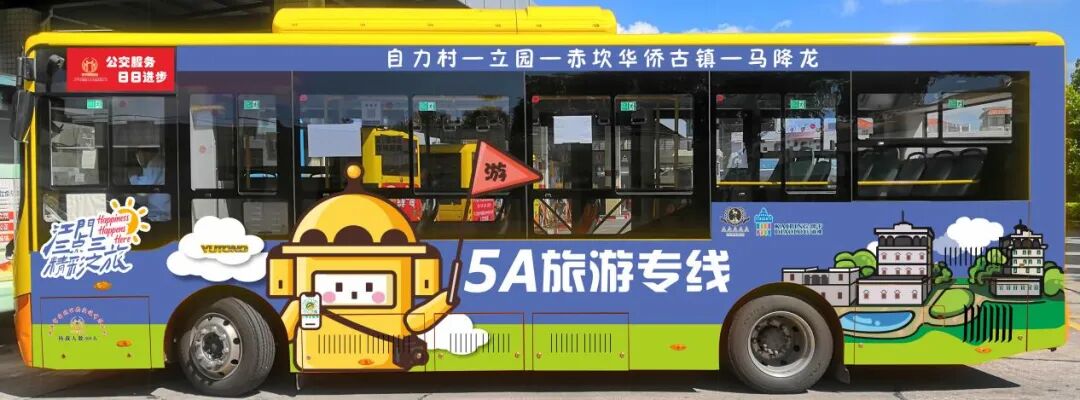 同时,专线巴士车辆外形和车厢内根据线路旅游特色进行装饰,巧妙融合了本地文化元素,市民游客在“沉浸式”体验侨乡文化魅力的同时,文旅巴士也成为流动的“风景线”。