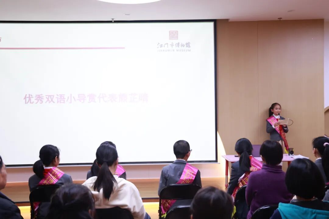 双语小导赏优秀指导教师代表王露莎表示:“我们始终坚持以孩子为中心,培养孩子学习兴趣和探究精神,注重培养孩子的爱国主义精神,鼓励小导赏讲好侨乡故事,增强文化自信。”她对小导赏们的寄语是,希望同学们能珍惜每次志愿服务机会,用心感受文物的魅力,让历史与文化在心中生根发芽。