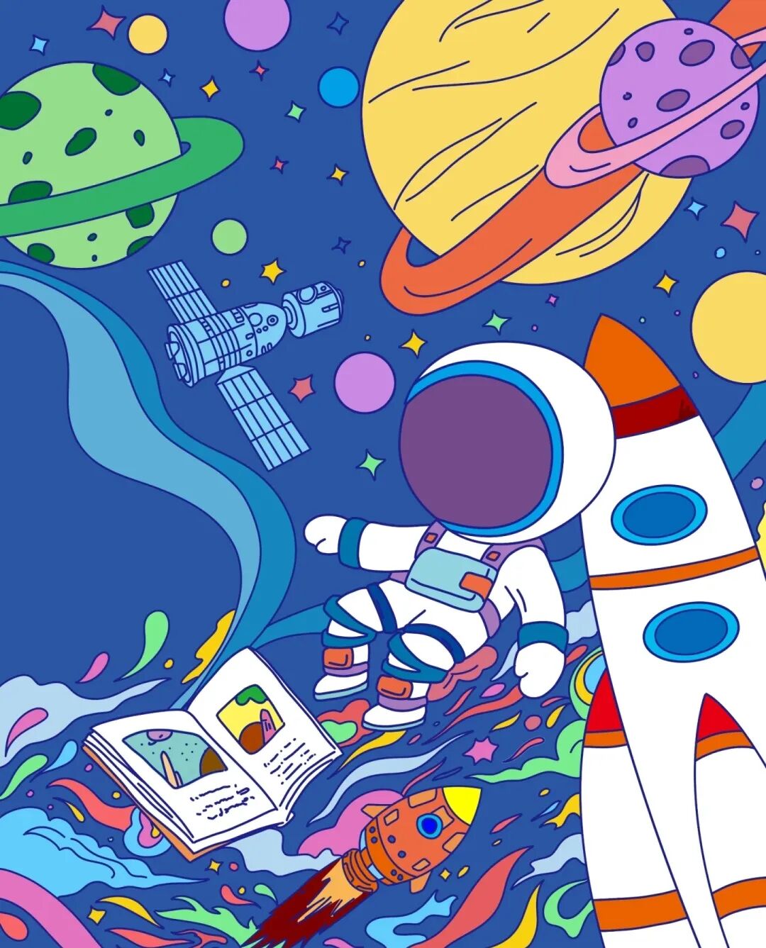 浩瀚的宇宙里会有什么?除了各种星球之外,还少不了宇航员、月球车、人造卫星、空间站等等,发挥自己的想象力,筑造一片属于你自己的小宇宙!