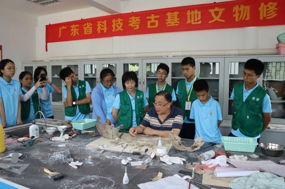 广东省科技考古基地考古夏令营是江门市博物馆暑期“王炸”项目,今年首次尝试与中学合作招生。课程邀请广东省文物考古研究院的专业老师参与授课,带领学生亲临最真实的考古发掘现场,亲身体验田野考古发掘、器物拼对、文物修复等考古工作,了解珠三角地区的最新考古发现,收获了学校、学生和家长的一致好评。