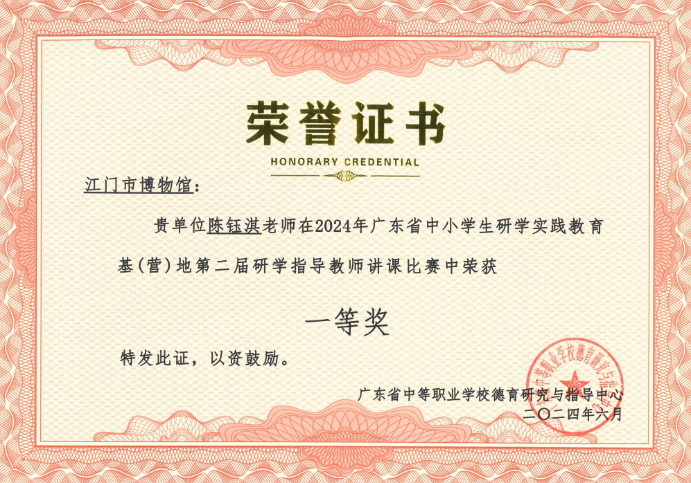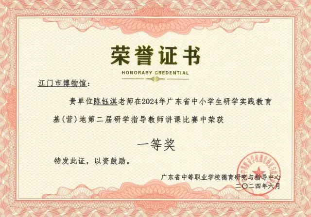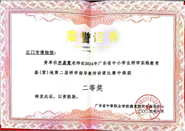江博研学课程获得公众的一致好评,也得到专家、同行朋友的肯定,收获了国家级荣誉一项、省级研学课程比赛一等奖一项、省研学讲课比赛一等奖、二等奖两项,共4项国家级、省级荣誉。