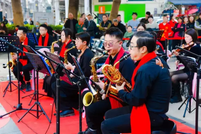 《Sway》的轻盈、《Close to You》的温情、《Quiet Night》的宁静、《粉红豹》的俏皮以及《夜来香》的醉人……一曲曲经典旋律响彻广场上空,让新年的气氛更浓。音乐会的曲目精心挑选,既有西方爵士乐作品,也有融合了中国传统音乐元素的创新曲目,展现了乐队对音乐的深刻理解和创新精神,也让不同年龄层的观众都能找到共鸣。