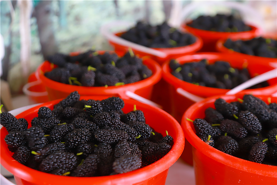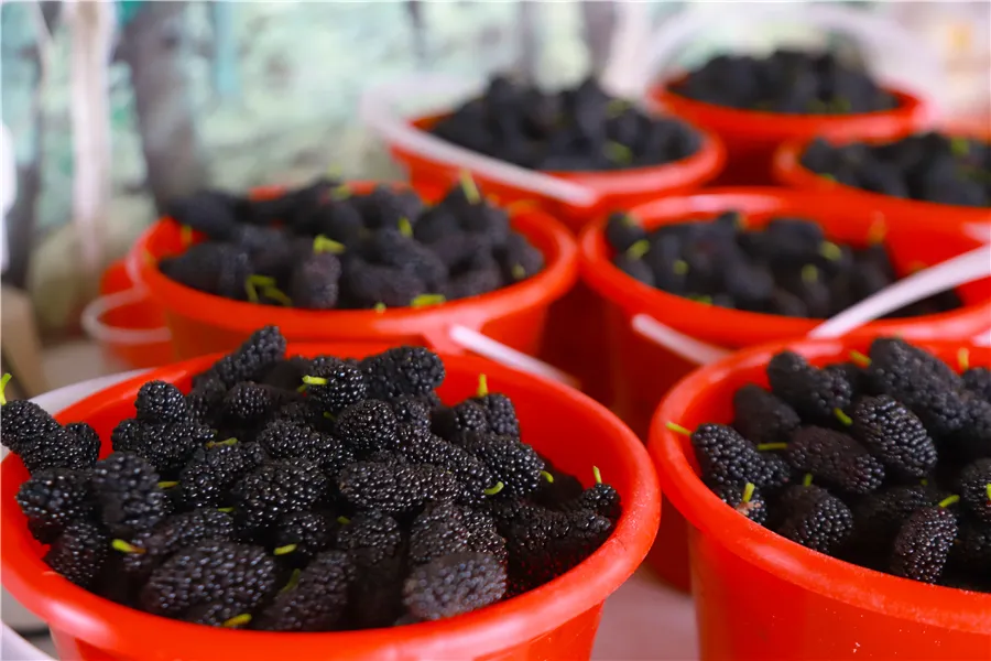 鲜艳欲滴的桑果吸引大批游客前来采摘品尝,