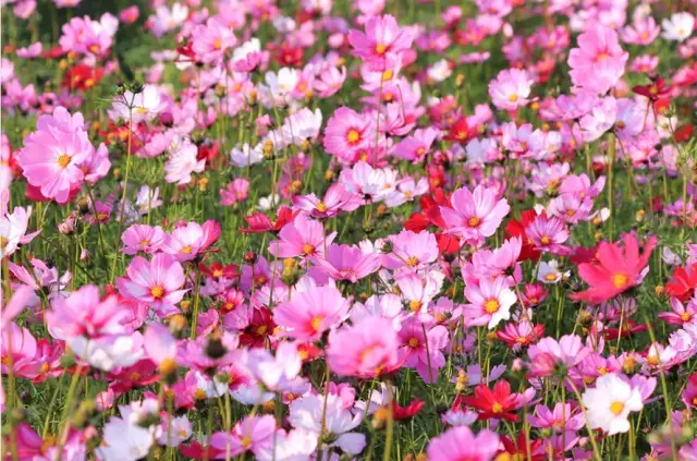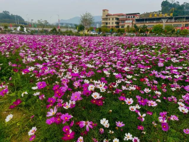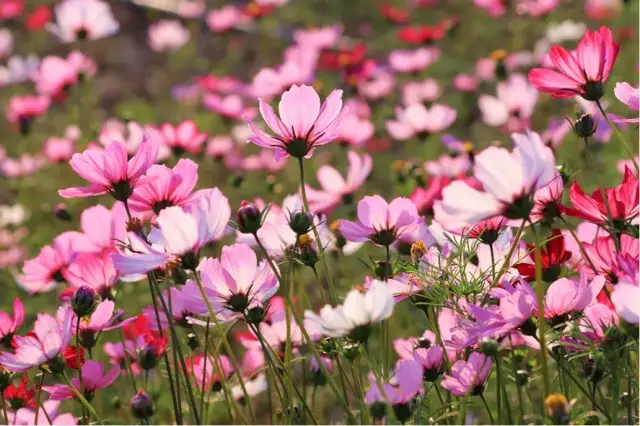 一大片格桑花在田间怒放,
